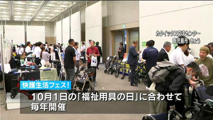「快護生活フェス!」は10月1日の「福祉用具の日」に合わせて毎年開かれています。今回は、63社の福祉機器メーカーが参加し、訪れた人は、実際に機器に触れたり話を聞いたりしながら会場をめぐることができます。
