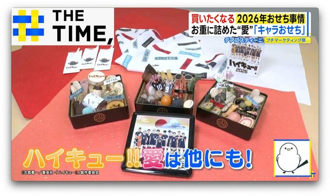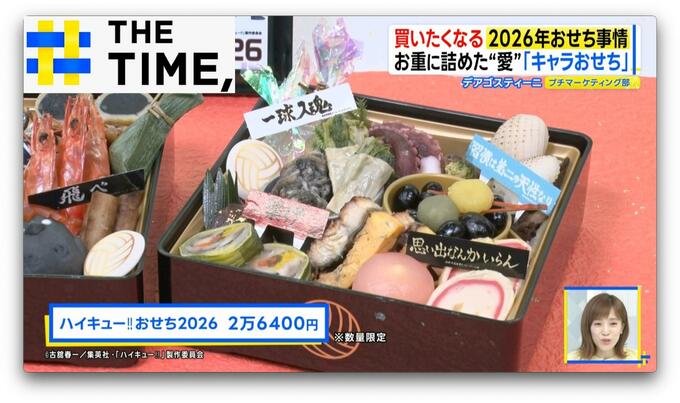 2026年は、バレーボールに青春をかける高校生たちを描いた人気アニメの「ハイキュー!!おせち2026」(2~3人前/2万6400円/サイズ約16.5×16.5×高さ15cm)※数量限定