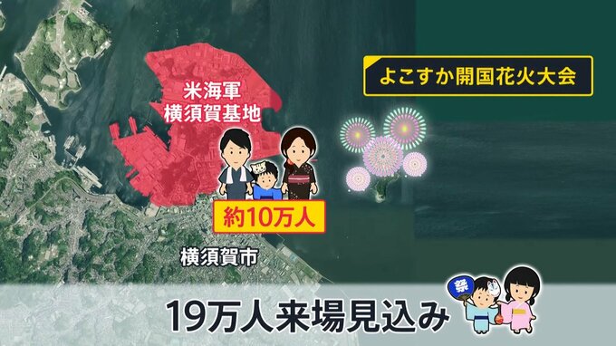 アメリカ軍横須賀基地から見る人もいる「よこすか開国花火大会」。