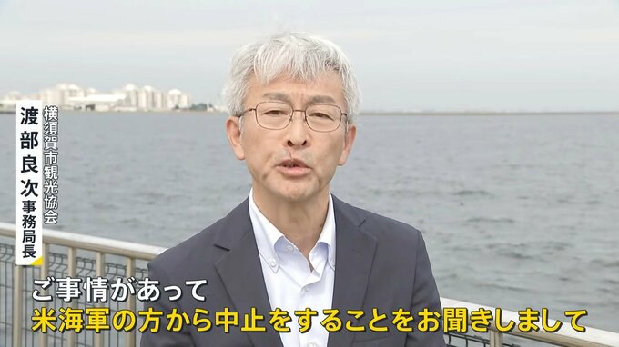 「ご事情があって、米海軍の方から中止をすることをお聞きしまして、スペースの確保が、他に変わり場所が用意できないということで断念した」