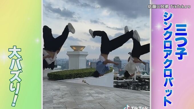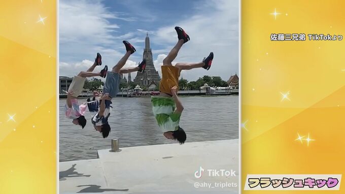 三兄弟が特に注目を集めているのは「フラッシュキック」という技。「フラッシュキックって技なんですけど、足パタパタってやって、それが僕たちの中で一番反響が良かった」と、説明。興味深いのは、「難しい技をしたからバズるっていうわけでもなくて、簡単で揃えた方がバズるみたいなところがある。」という分析です。