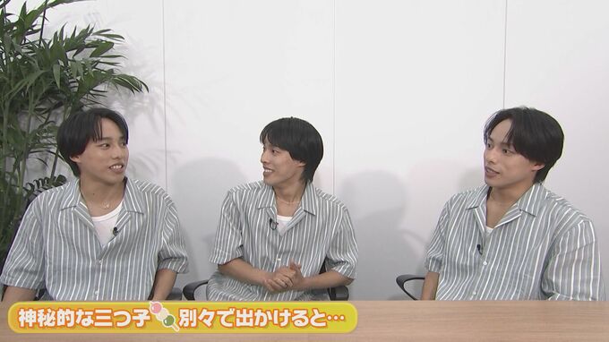 そして、三つ子ならではのエピソードも披露。「休日に1人1人外出した時があって、最終的に全員同じ店に集結しちゃって」と語り、「古着屋なんですけど、下北沢で古着見てて」と、偶然同じ場所に集まったという不思議な経験を語りました。