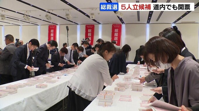 「自民党道連による道内の党員票の開票作業が始まりました」