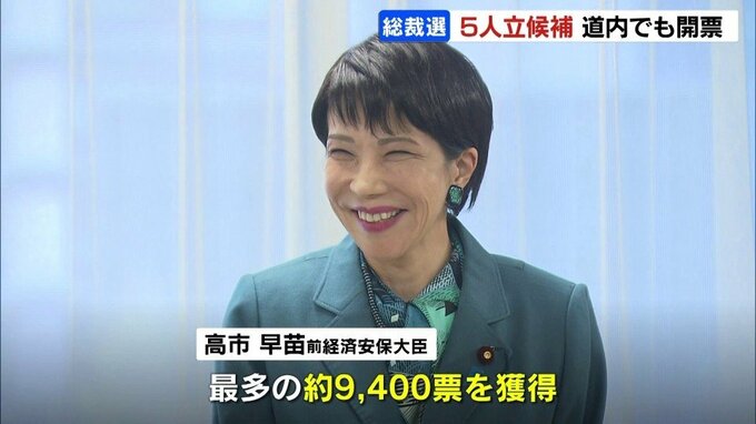 4日の自民党総裁選で、北海道内の党員票が先ほど開票され、前の経済安保担当大臣、高市早苗氏が最も票を集めました。