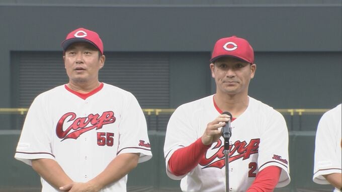 「皆さん本当にお久しぶりです。ことし去年と、チームの力になれず本当にすみませんでした。そして18年間、カープで面倒をみてくださった松田オーナー、球団関係者の皆さん、そして監督、コーチ、裏方の皆さん、本当にありがとうございました。」