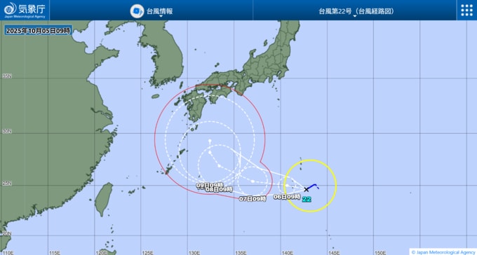 台風22号は次第に北よりの進路が予想されています。北よりに進めば、沖縄・奄美など南西諸島や九州、西日本にも影響が出る可能性があります。気象庁が発表する最新の台風情報に注意してください。