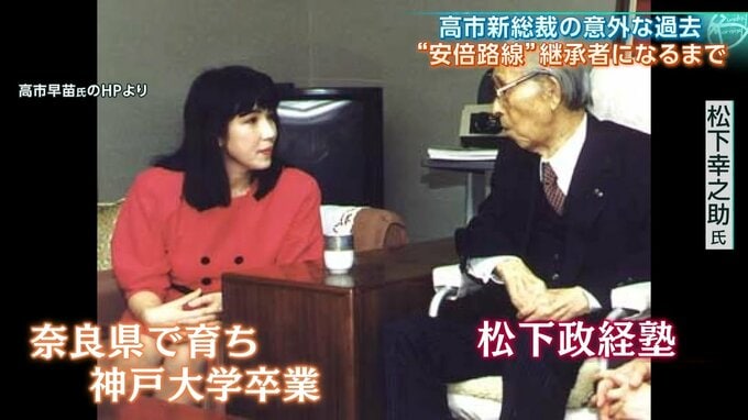 高市氏はサラリーマン家庭の出身。奈良県で育ち、神戸大学を卒業後、松下政経塾やアメリカ議会での勤務を経て、キャスターやコメンテーターとして活躍しました。サンデーモーニングに出演したことも。