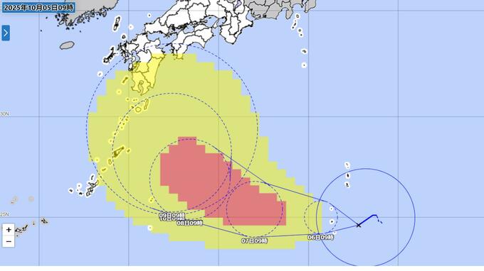 台風22号は父島の南にあって、ゆっくりと西へ進んでいます。8日には「強い」勢力に発達する見込みで、日本列島に接近する予想進路になっています。最新の情報に注意するようにして下さい。