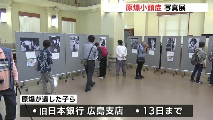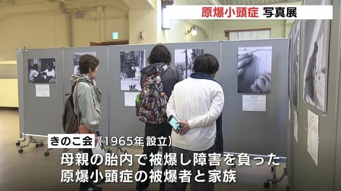写真展「原爆が遺した子ら」は、広島市中区の旧日本銀行広島支店で開かれています。主催する「きのこ会」は、母親の胎内で被爆し脳や体に重い障害を負って原爆小頭症の被爆者とその家族の団体で、1965年に設立されました。