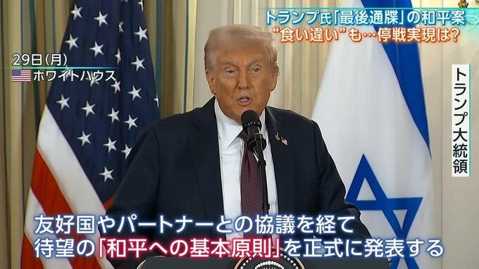 29日に発表されたトランプ大統領の和平案。「戦闘の終結」や「人質全員の解放」にはじまり、「停戦後の統治機関」についてなど、20項目に及びました。
