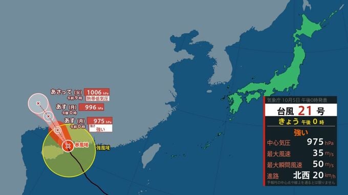 台風21号は、きょう(5日)正午には南シナ海にあって、1時間に20キロの速さで北西へ進んでいます。