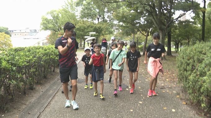 イベントは、ウオーキングで健康を維持しようと毎年開かれていて、地元・愛知製鋼に所属する丸尾選手と山西選手の2人が市民およそ350人と一緒に秋の聚楽園公園を歩きました。