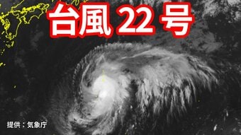 気象庁によりますと、台風22号はきょう(6日)午前6時には、父島の南約250キロにあって、ゆっくりした速さで北北西へ進んでいます。中心の気圧は994ヘクトパスカル、中心付近の最大風速は23メートル、最…