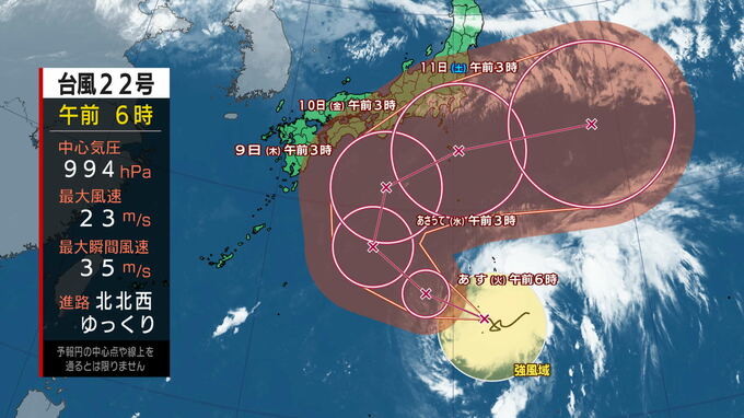 台風22号は、北西に進み勢力を強め、9日(木)ごろから日本列島に近づく見込みです。