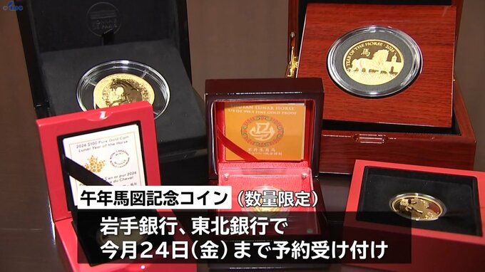 2026年の干支、「午」が描かれた記念コインが全国で発売されるのを前に、6日岩手県内の金融機関でも予約の受付が始まりました。