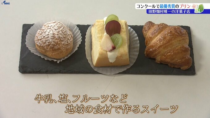 店ではプリンだけでなく、同じく山地酪農牛乳を生地に使ったシュークリームやシフォンケーキ、村で昔ながらの製法で作られた塩を使った「番屋の塩バタークロワッサン」なども販売。