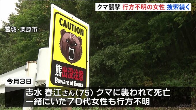 宮城県栗原市では、クマに襲われ行方がわからなくなったとみられる女性の捜索が続いていますが、発見には至っていません。栗原市の栗駒山では今月3日、キノコ採りに入った志水春江さん(75)がクマに襲われて死亡…