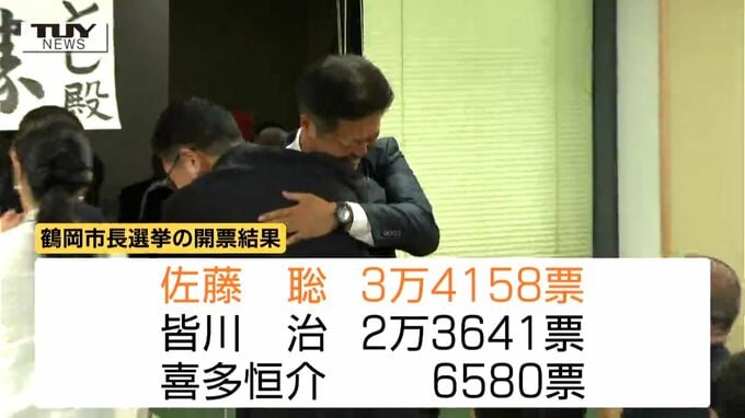 三つどもえの戦いとなった鶴岡市長選挙は、新人の佐藤聡さんが3選を目指した皆川治さんにおよそ1万500票の差をつけて初当選を果たしました。
