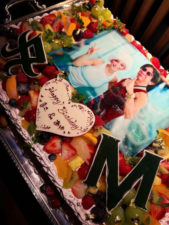 浜崎あゆみさんは「昨日マサ @max_matsuura にお誕生日のお花を渡しに行ったら、まさかのわたしが巨大ケーキでサプライズをして頂いてしまいました」と綴ると、画像をアップ。