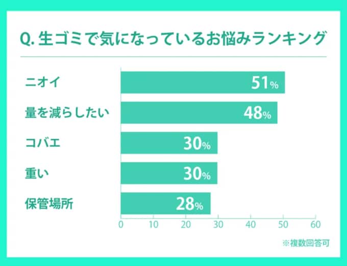 家庭用生ゴミ処理機を販売する「loofen」の2024年の調査によると、生ゴミで気になる悩みとして1番に挙げられたのが「ニオイ」でした。実は、寒くなっても油断できないのです。