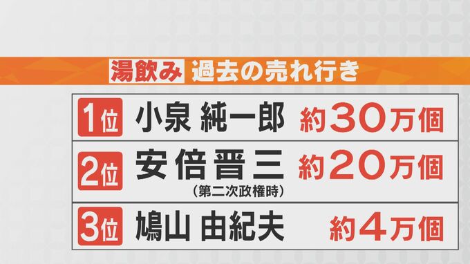 小泉氏の父、小泉純一郎元総理が在任中の湯のみが、ダントツ1位の約30万個。