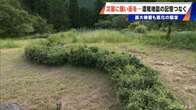 断層に対し左右から押された力で地震が起き、茶の木が約8メートルもズレたのです。地震のすさまじさを伝えるこの茶畑は、所有者の意志でそのまま残されてきました。