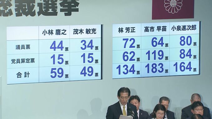 高市氏が党員票で大差をつけてトップに。愛知・岐阜・三重では、いずれも党員は高市氏を最も支持する結果となり、最も多い議員票を獲得した小泉氏との「決選投票」に。