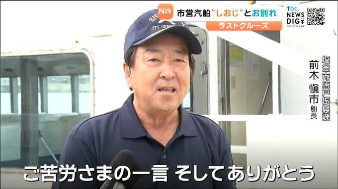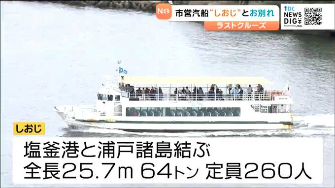 宮城県の塩釜港と浦戸(うらと)諸島を結ぶ市営汽船「しおじ」の最後の運航が、6日に行われ、地元の子どもたちや乗客らが別れを惜しみながら感謝の気持ちを伝えました。
