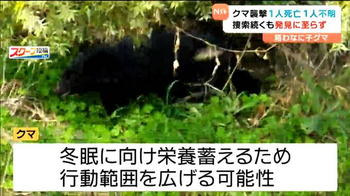 10月3日、宮城県栗原市の栗駒山でキノコ採りをしていた女性が、クマに襲われ死亡し、一緒にいた別の女性が、今も行方不明となっています。現場の箱わなには、6日、子グマ1頭がかかっているのが見つかり駆除されま…