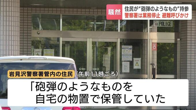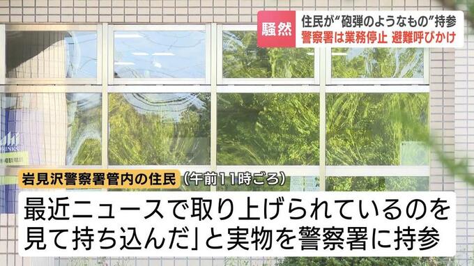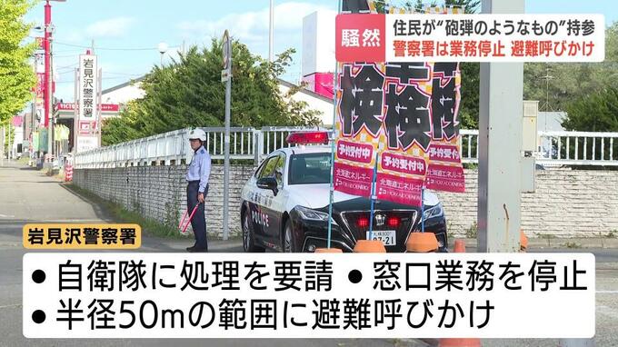 岩見沢警察署は陸上自衛隊に処理を要請、窓口業務を停止して大半の署員を避難させたうえで半径50メートルの範囲に避難を呼びかけました。