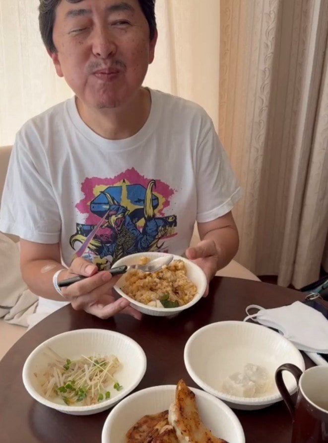続けて「そして、妻も、許しを得て 病室にチャーハンを作ってきてくれました! おいしかった 餃子も! やった」と、美味しそうにチャーハンと餃子を楽しむ画像をアップしました。