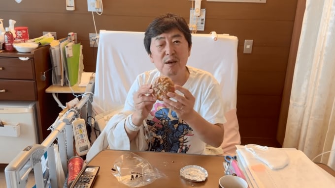 そして「週末で、家族がお見舞いに来てくれて まずは、母と弟夫婦」「シュークリーム1個はオッケーと言う、病院側から許可をいただいて お見舞いに買ってきてくれました」「久しぶりに病院食以外のものを食す 幸せです 母はぶつぶつ喋ってますね(笑)」と、記しました。
