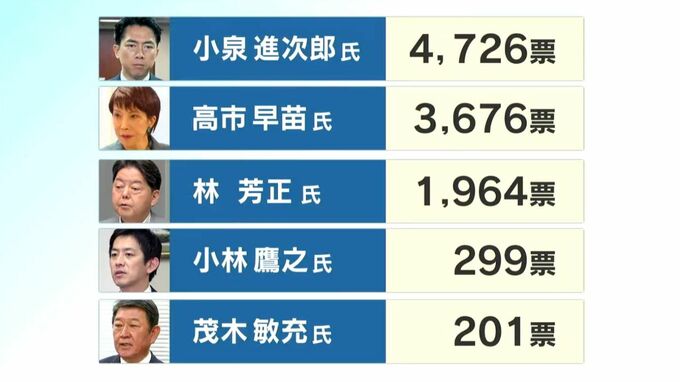 自民党鹿児島県連では、県内の党員・党友あわせて1万905人が投票し、小泉氏が最多の4726票を獲得しました。
