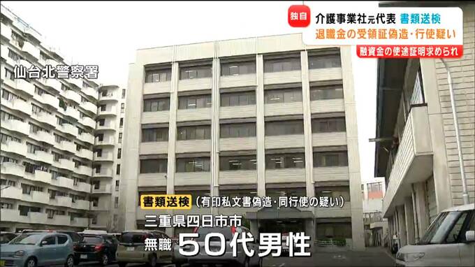 2023年、仙台市内で介護事業を展開する会社の元代表の男性が、融資元から融資金の使い道を示す書類の提出を求められた際にその書類を偽造したとして書類送検されていたことが分かりました。
