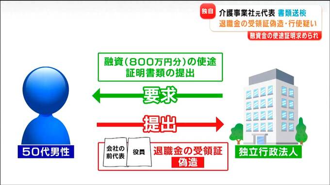 男性はその際、退職していない会社の前代表と、役員1人の退職金の受領証を偽造した上でFAXで提出し、これを使った疑いがもたれています。