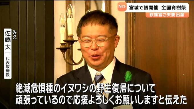 夜には、仙台市泉区のホテルで開かれた歓迎レセプションに出席され、全国育樹活動コンクールの受賞者らと懇談されました。