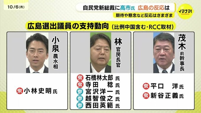 週末に行われた自民党総裁選は、決戦投票の結果、高市早苗氏が新総裁に選出されました。広島での1日と、街の声をまとめました。
