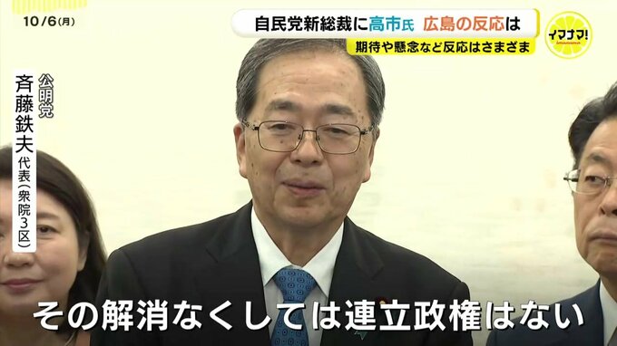 一方、自民党と連立を組んでいる公明党の斉藤代表は高市新総裁と会談。企業団体献金の規制強化や靖国神社をめぐる歴史認識、など懸念点を伝えました。
