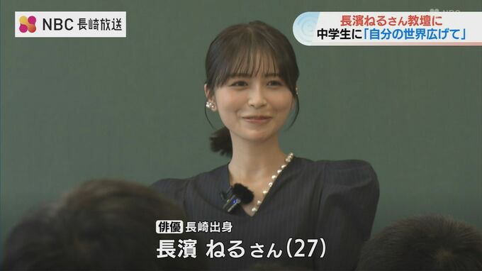 長崎出身の俳優・長濱ねるさんが6日、長崎市の中学校で教壇に立ち、海外留学などの経験をもとにした自身の考えを伝えました。
