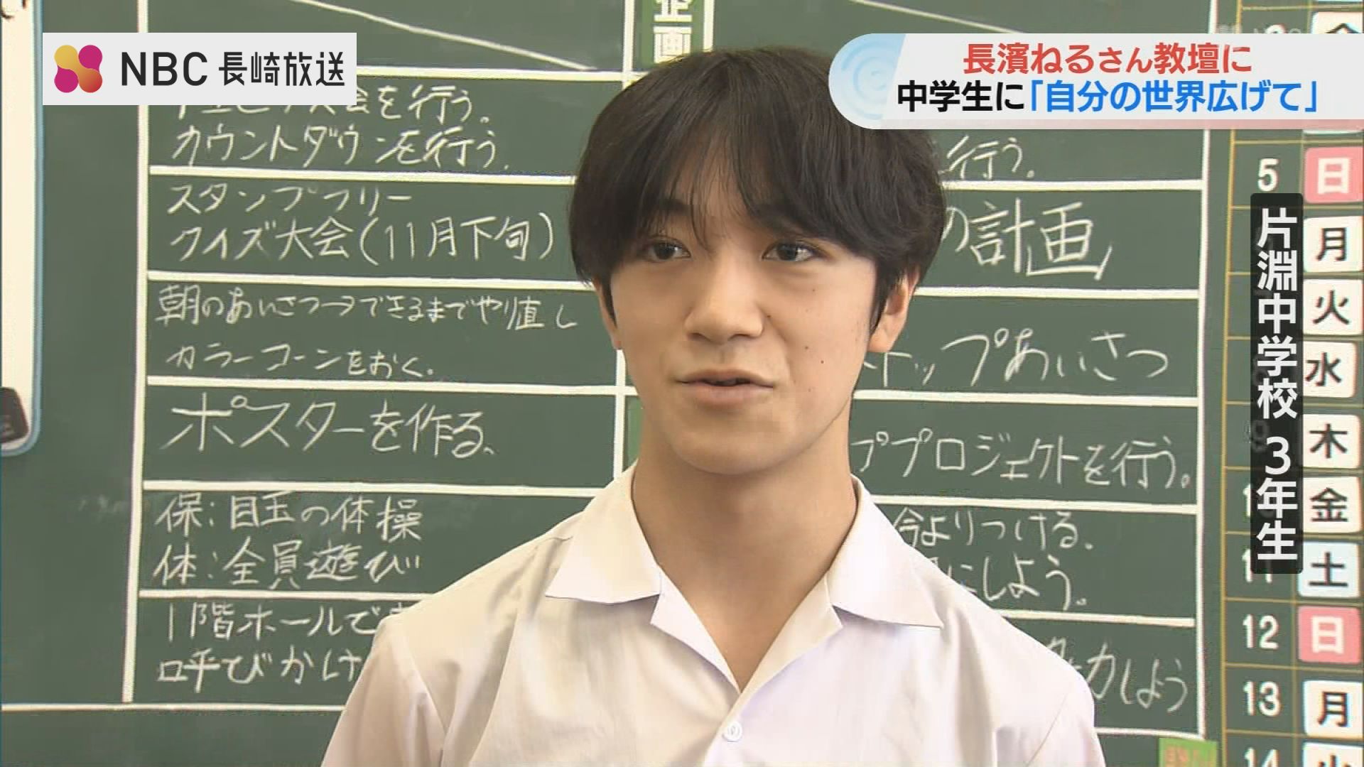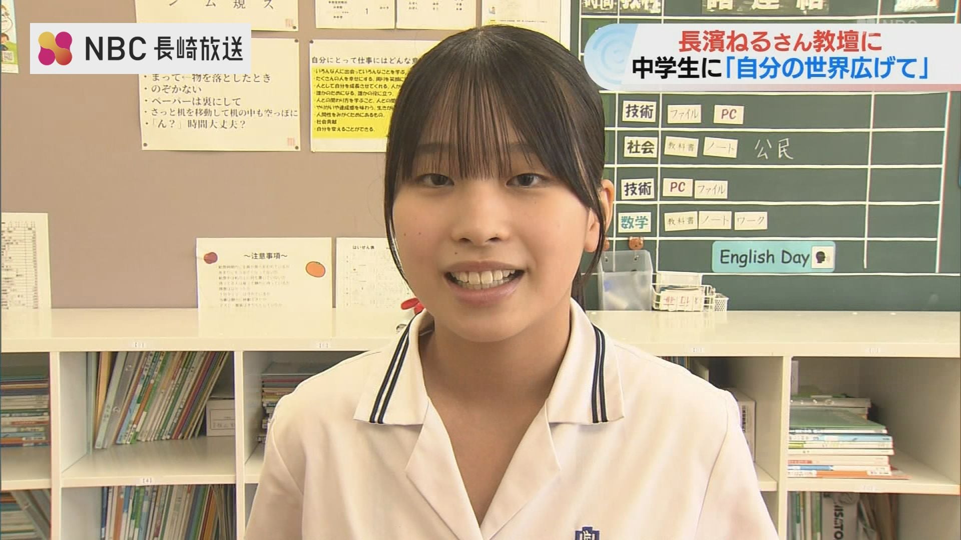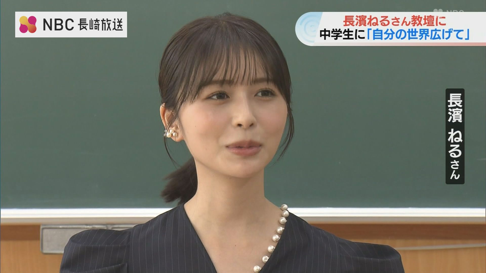 長崎出身の俳優・長濱ねるさんが6日、長崎市の中学校で教壇に立ち、海外留学などの経験をもとにした自身の考えを伝えました。