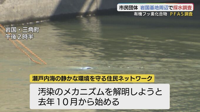 人体や環境への有害性が指摘される有機フッ素化合物PFASを調べている市民団体が6日、アメリカ軍岩国基地(山口県岩国市)に近接する遊水池で採水を行いました。
