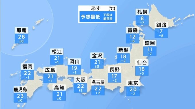 また、北日本を中心に冷たい空気が流れ込んでくる影響で朝は冷え込む見込みで、札幌の予想最低気温は8℃。今シーズン初めての一桁となるでしょう。