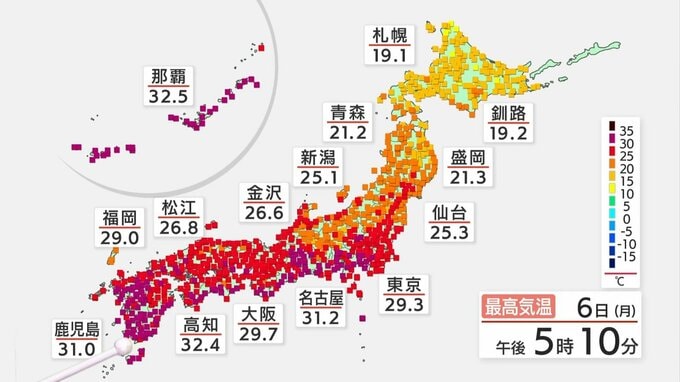 鹿児島:31℃ 那覇 :33℃