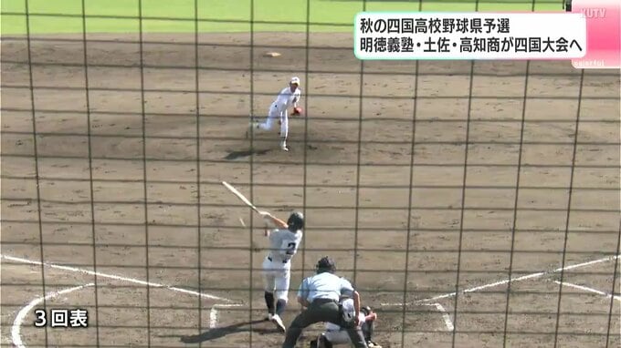 また、3位決定戦では高知商業と高知中央が対戦。3回に3点を先制した高知商業が去年夏の甲子園に出場した高知中央の反撃を1点に抑え、2年ぶりに四国大会への切符を手にしました。