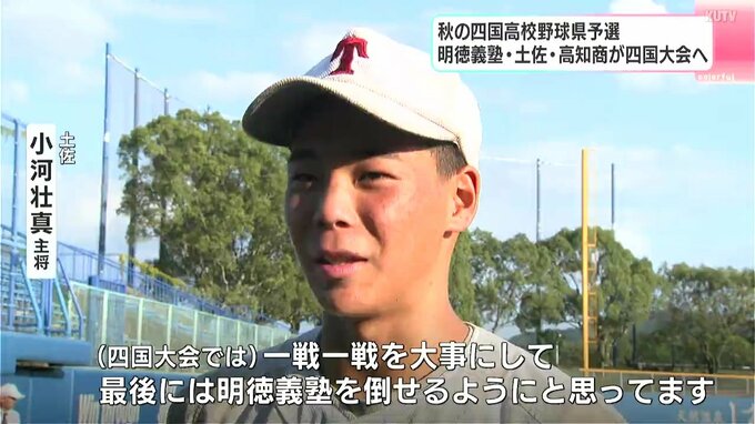 「今大会を通してバントのミスというのがほとんどなかったのでそういうところが勝利につながったかなと思います。(四国大会は)高知の代表として出場させてもらうので恥じないプレー全力プレーで神宮を目指して頑張ります。相手も強いと思うのでもう一回自分たちのやるべきことを出来ることをしっかり見直してやっていきたいと思います」