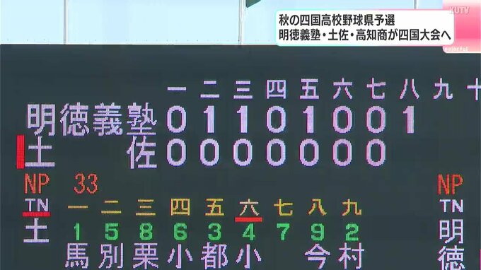 秋の四国高校野球県予選は最終日の5日、決勝戦と3位決定戦が行われ、明徳義塾が2年連続24回目の優勝を果たしました。また、四国大会には明徳義塾、土佐、高知商業の3校が出場することになりました。