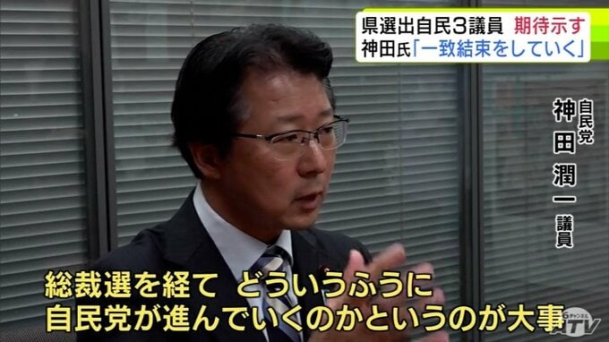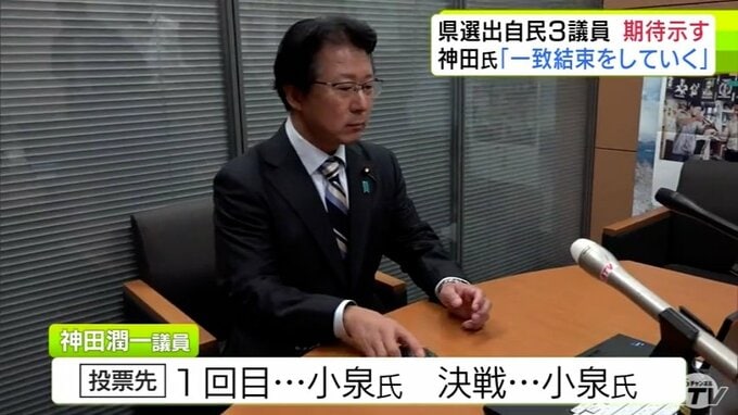 神田潤一 議員は、1回目、決戦投票いずれも小泉氏に投票したと明かした上で「一致結束」のために力を注ぐと明らかにしました。