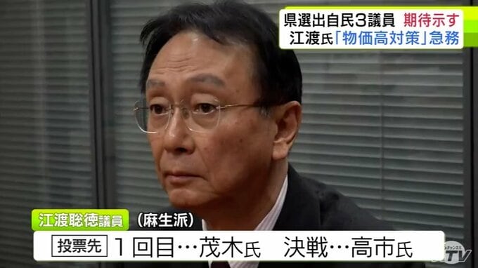 麻生派に所属する江渡聡徳 議員も「保守で1つにまとまる」観点から、決戦投票で高市氏に投じました。