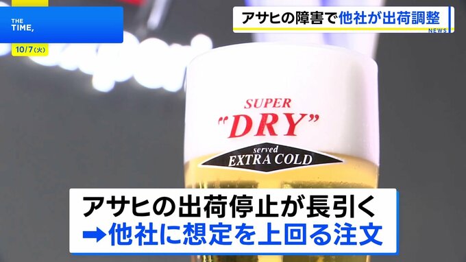アサヒビールの出荷停止が長引いている影響で、他のビールメーカーへの注文が急増し、各社が出荷調整を迫られていることが分かりました。サイバー攻撃を受けたアサヒグループではビールなどの出荷停止が長引いてい…