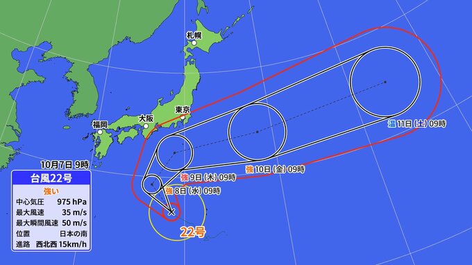 【台風情報】「台風22号」9日(木)には「非常に強い勢力」に 関東甲信地方は注意を 今後の進路は?【7日午前9時45分発表 気象庁 10月7日~10月23日までの16日間天気シミュレーション】|TBS NEWS DIG
